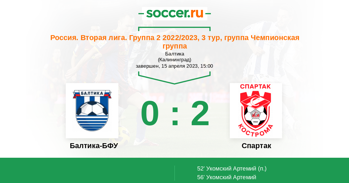 Протокол матча Балтика-БФУ против Спартак Кострома