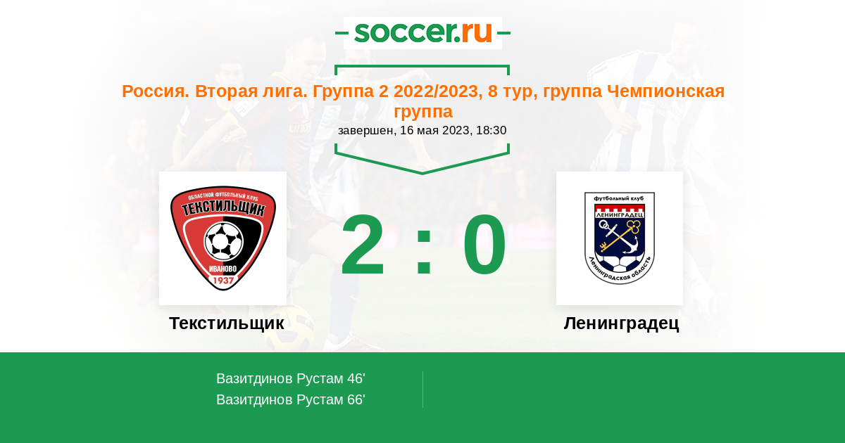 Протокол матча Текстильщик против Ленинградец