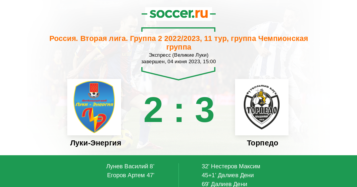 Протокол матча Луки-Энергия против Торпедо