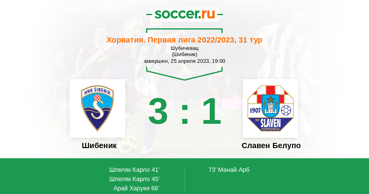 Протокол матча Шибеник против Славен Белупо