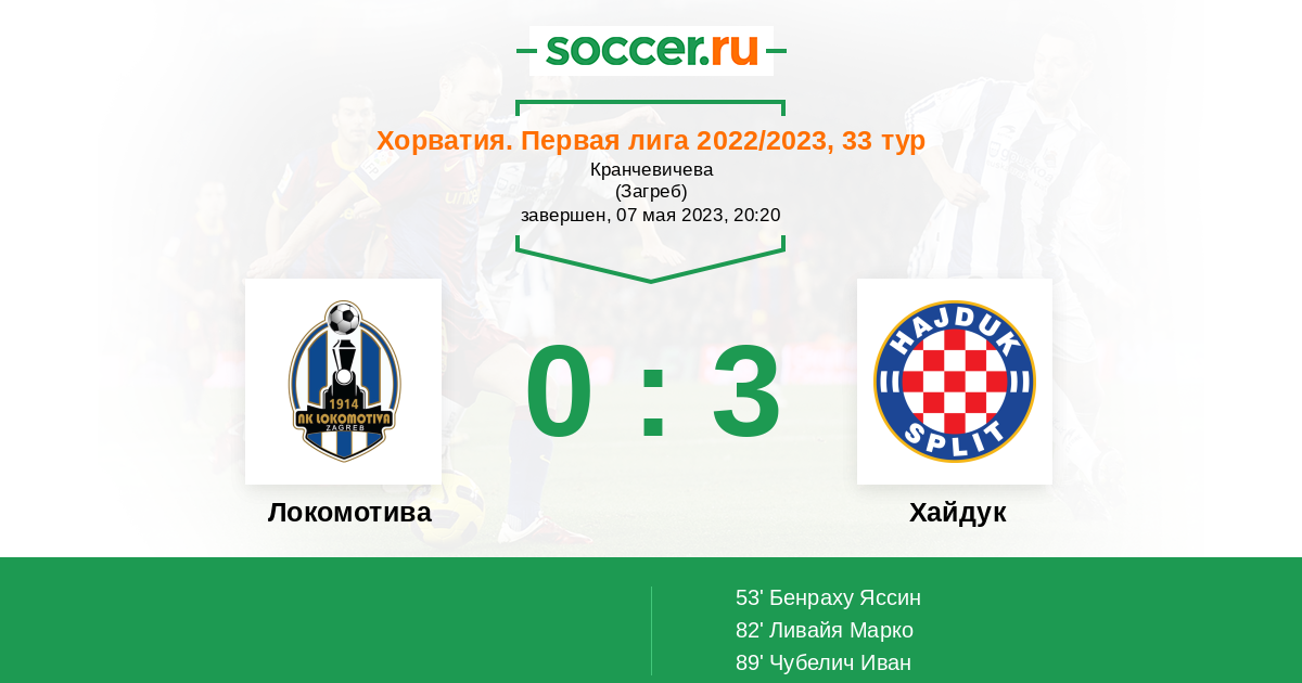 Протокол матча Локомотива против Хайдук