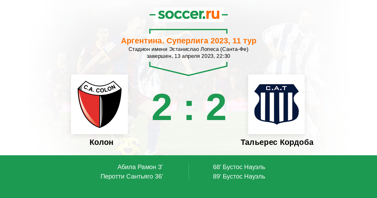 Протокол матча Колон против Тальерес Кордоба