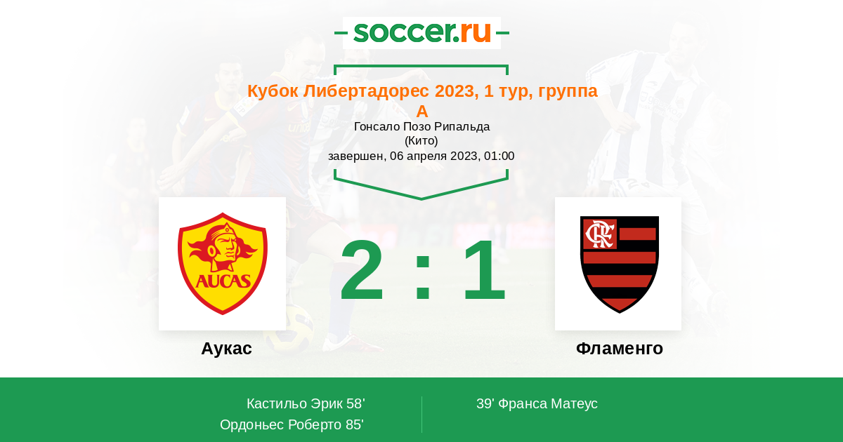 Протокол матча Аукас против Фламенго
