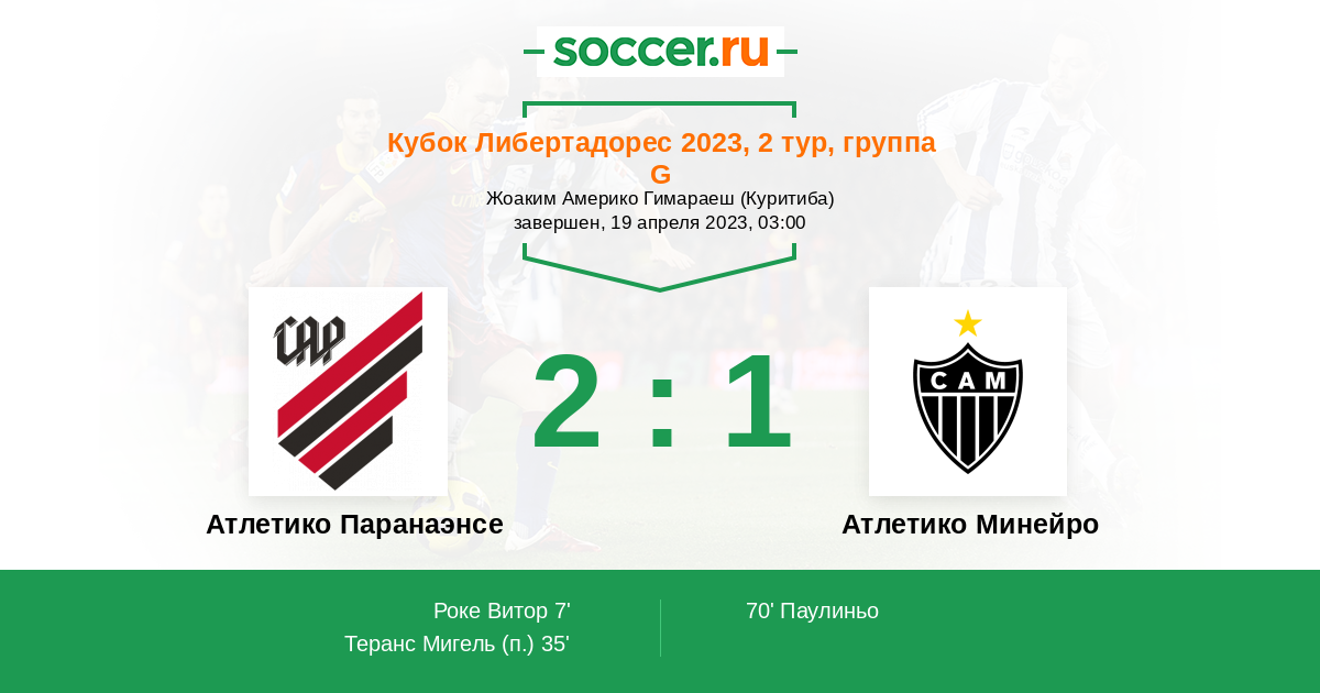 Протокол матча Атлетико Паранаэнсе против Атлетико Минейро