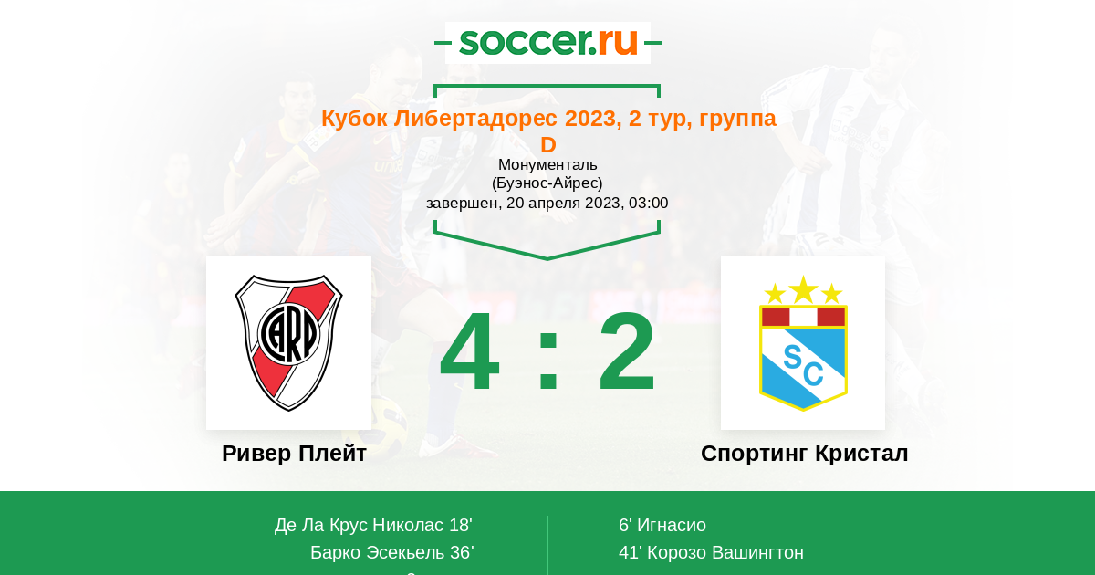 Протокол матча Ривер Плейт против Спортинг Кристал