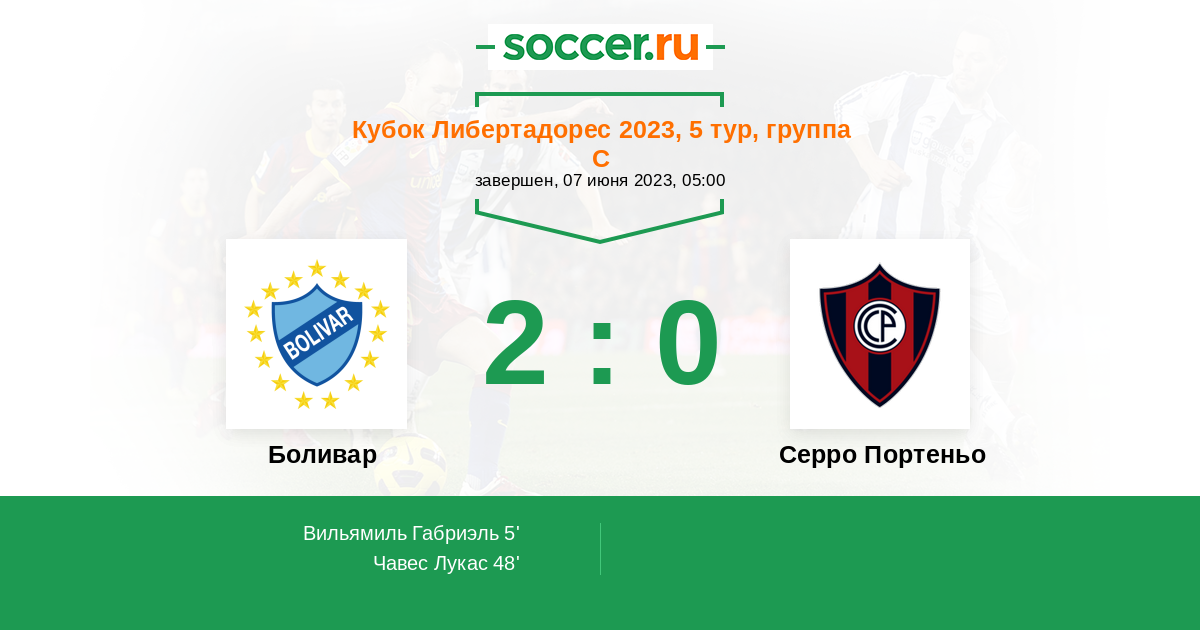 48' (2:0) Чавес Лукас (30) (Бехарано Диего (8))