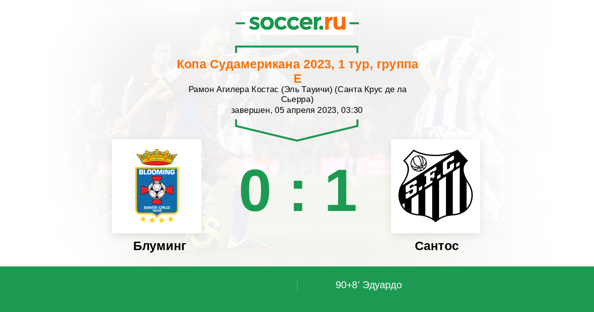 Гол90+8' (0:1) Эдуардо (4) (Руис Даниэль (7))