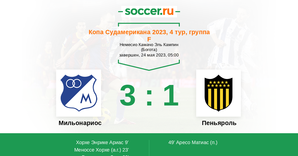 Протокол матча Мильонариос против Пеньяроль