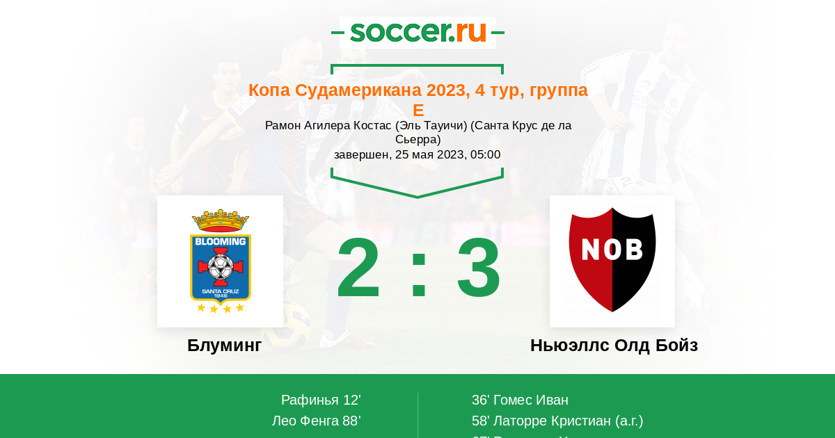 Протокол матча Блуминг против Ньюэллс Олд Бойз