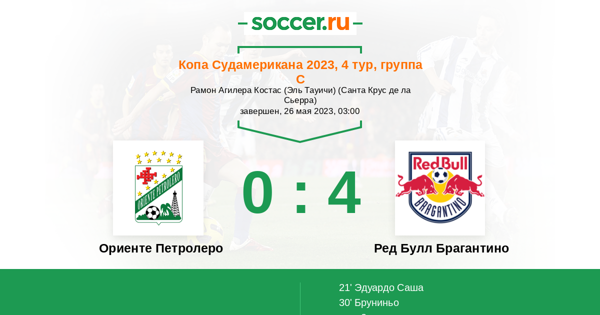 Протокол матча Ориенте Петролеро против Ред Булл Брагантино