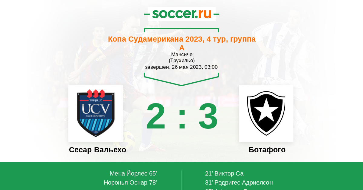 21' (0:1) Виктор Са (7) (Фрейтас Марлон (17))