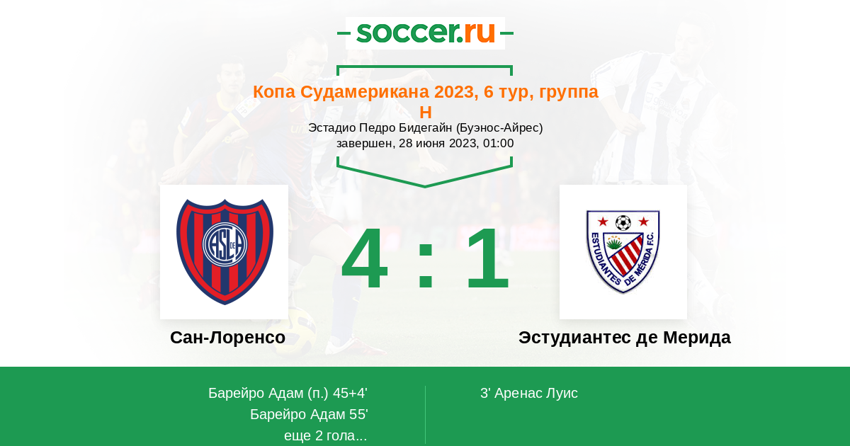 Протокол матча Сан-Лоренсо против Эстудиантес Мерида
