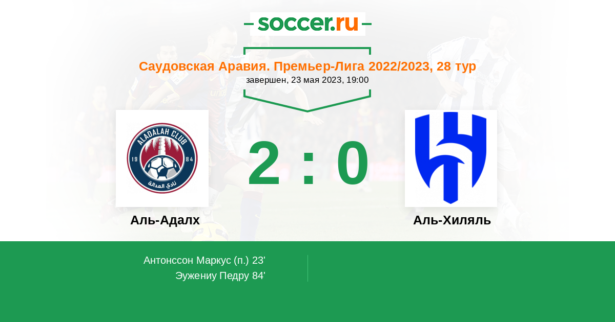 Протокол матча Аль-Адалх против Аль-Хиляль