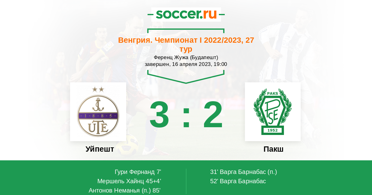 Протокол матча Уйпешт против Пакш