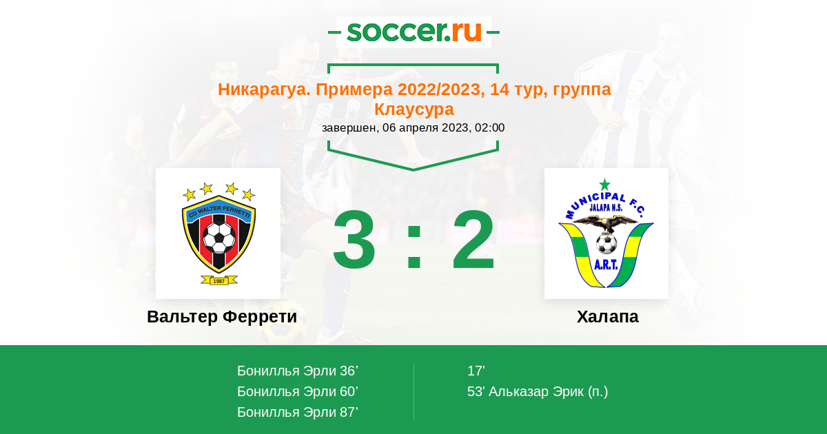 Протокол матча Вальтер Феррети против Халапа