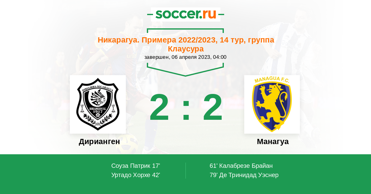 Протокол матча Дирианген против Манагуа