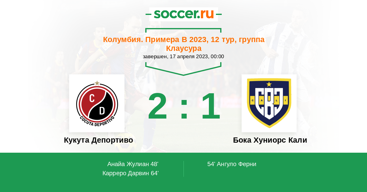 Протокол матча Кукута Депортиво против Бока Хуниорс Кали