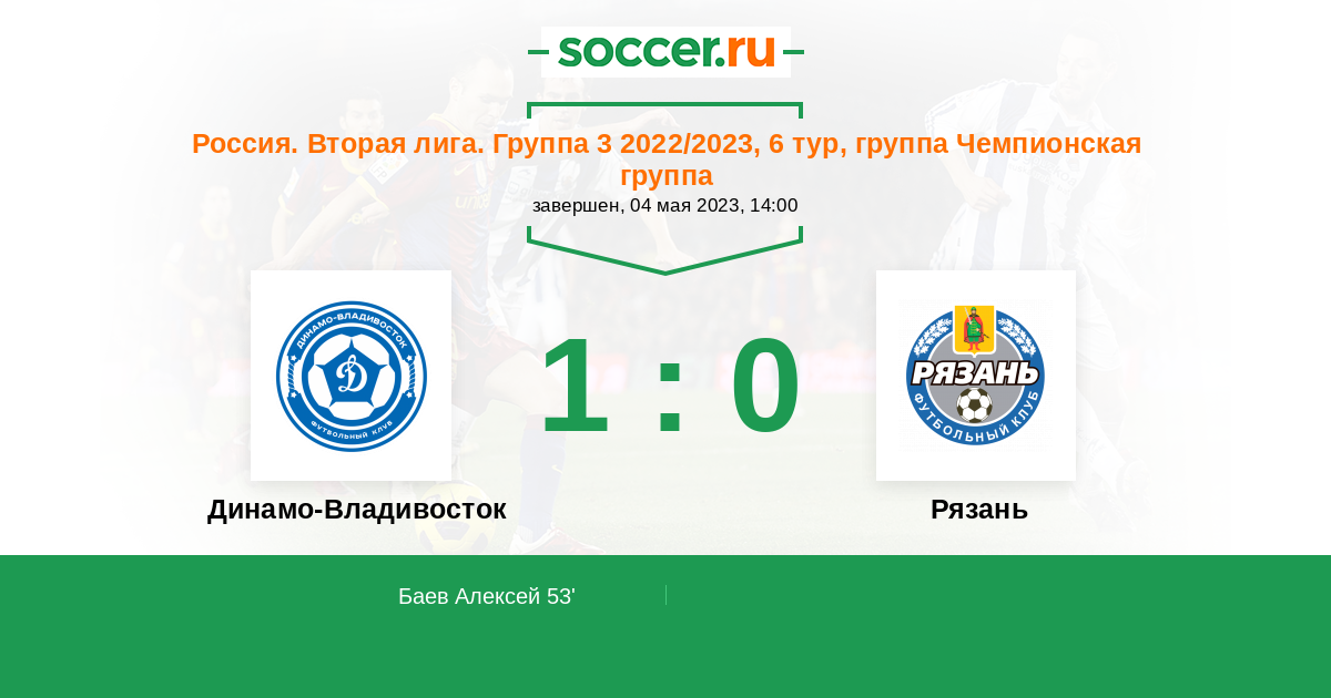 Протокол матча Динамо Владивосток против Рязань