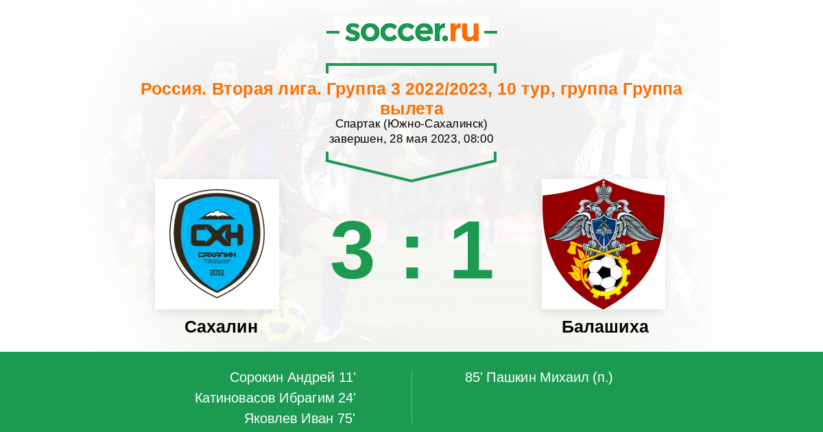 Протокол матча Сахалин против Балашиха