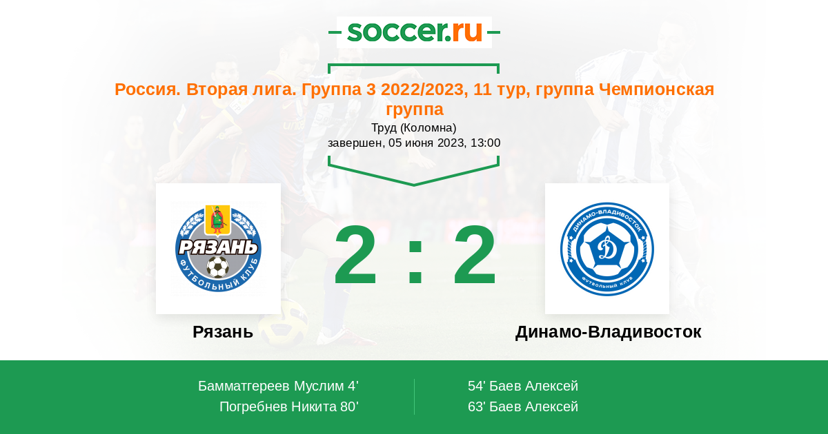 Протокол матча Рязань против Динамо Владивосток