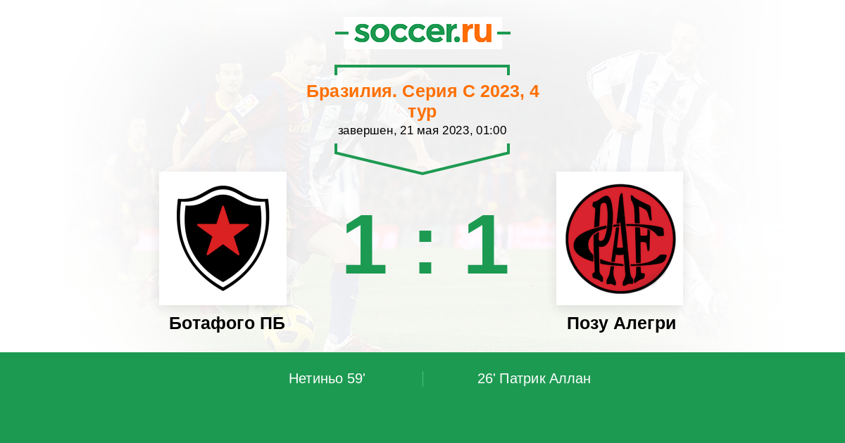 Протокол матча Ботафого ПБ против Позу Алегри