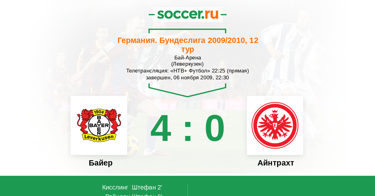 Протокол матча Байер против Айнтрахт