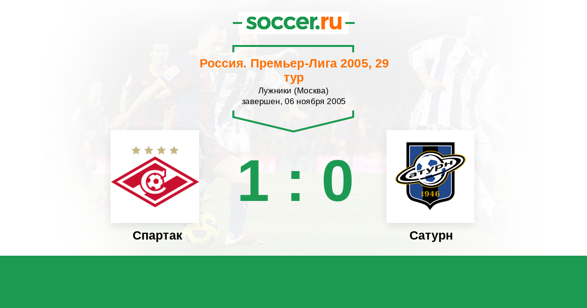 Протокол матча Спартак против Сатурн