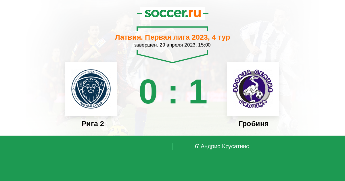 Протокол матча Рига 2 против Гробиня