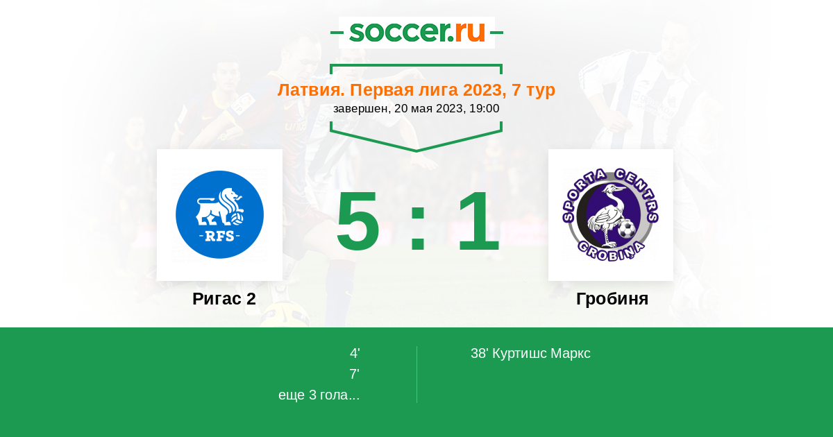 Протокол матча Ригас 2 против Гробиня
