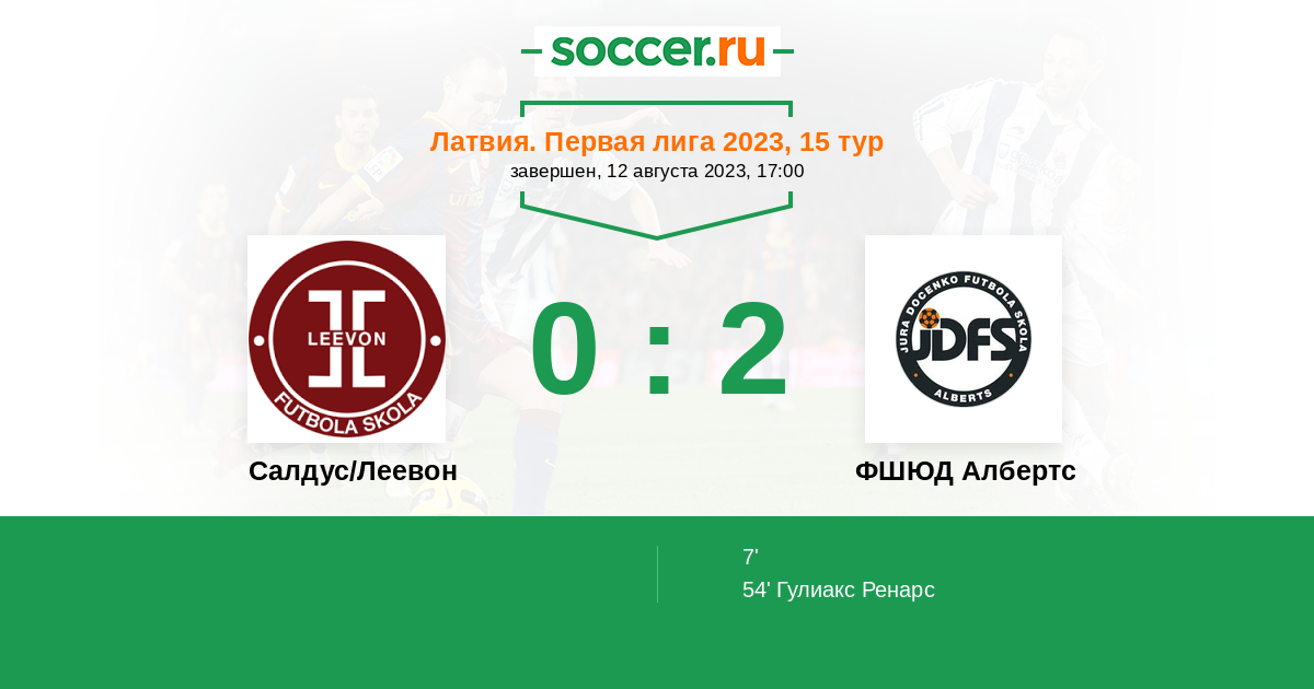 Протокол матча Салдус/Леевон против ФШЮД Албертс