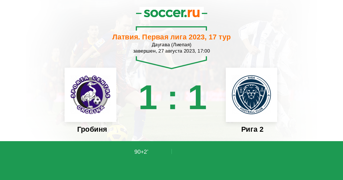 Протокол матча Гробиня против Рига 2