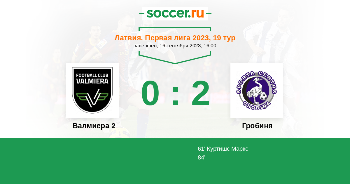 Протокол матча Валмиера 2 против Гробиня
