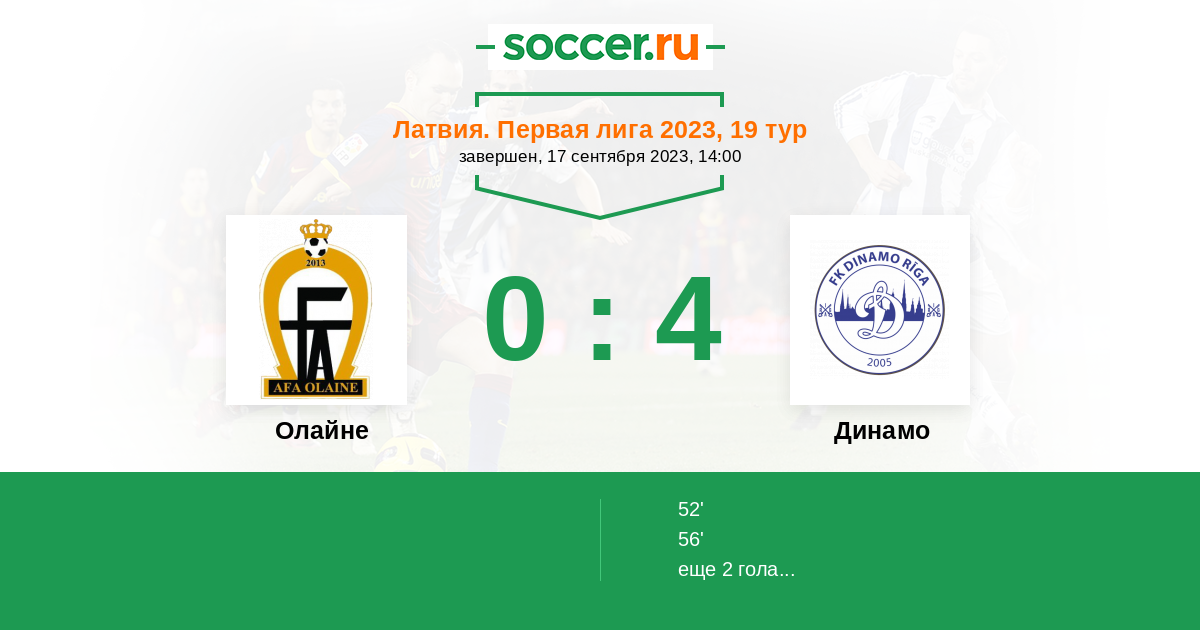 Протокол матча Олайне против Динамо