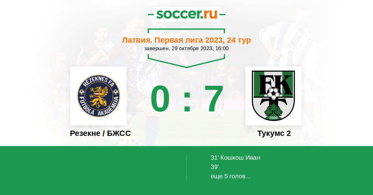 Протокол матча Резекне / БЖСС против Тукумс 2