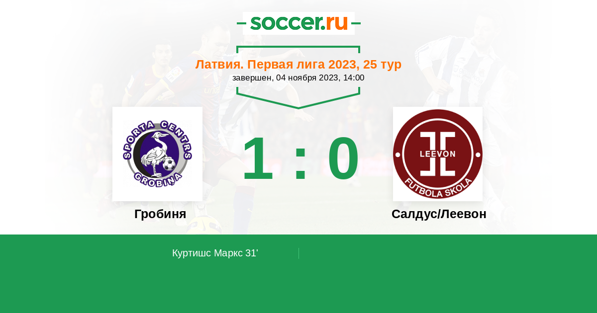 Протокол матча Гробиня против Салдус/Леевон