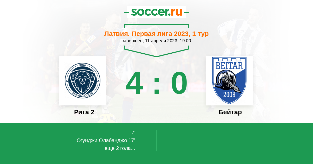 Протокол матча Рига 2 против Бейтар