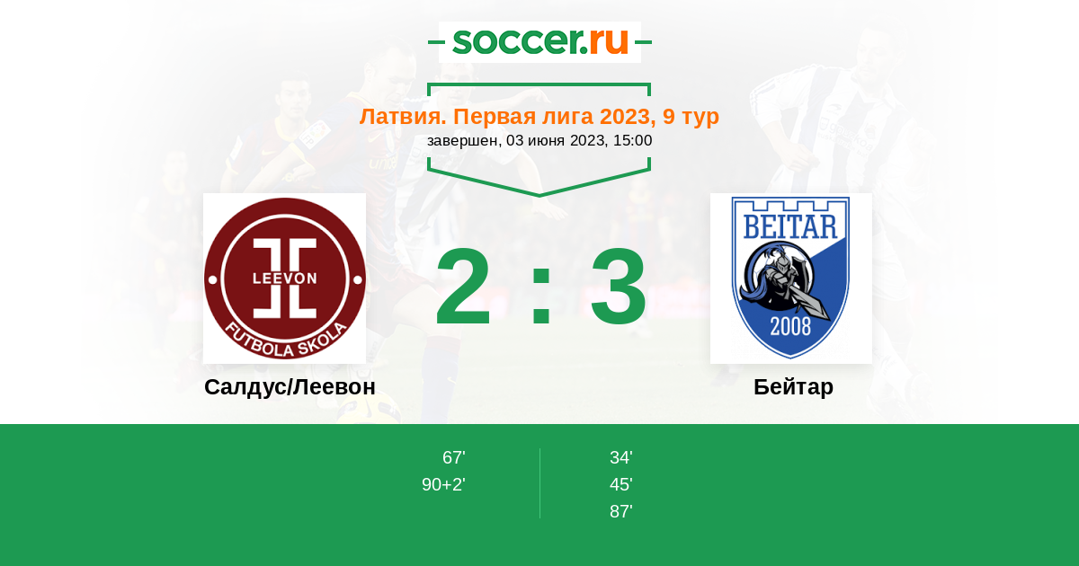 Протокол матча Салдус/Леевон против Бейтар