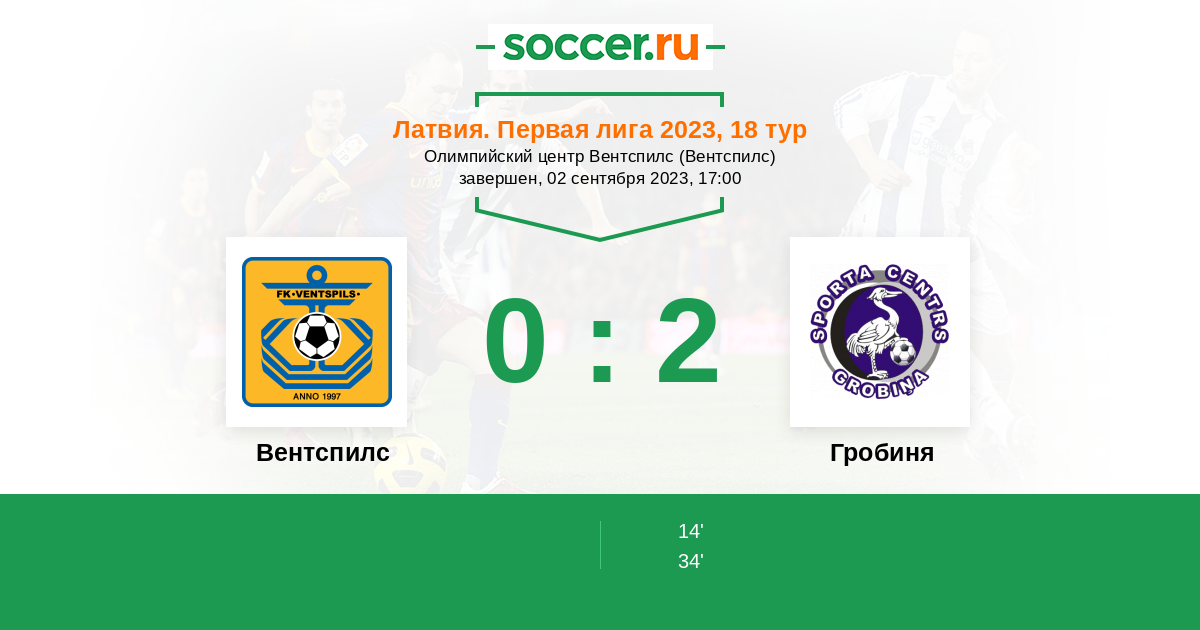 Протокол матча Вентспилс против Гробиня