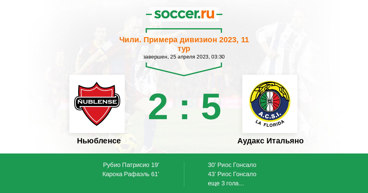 Протокол матча Ньюбленсе против Аудакс Итальяно