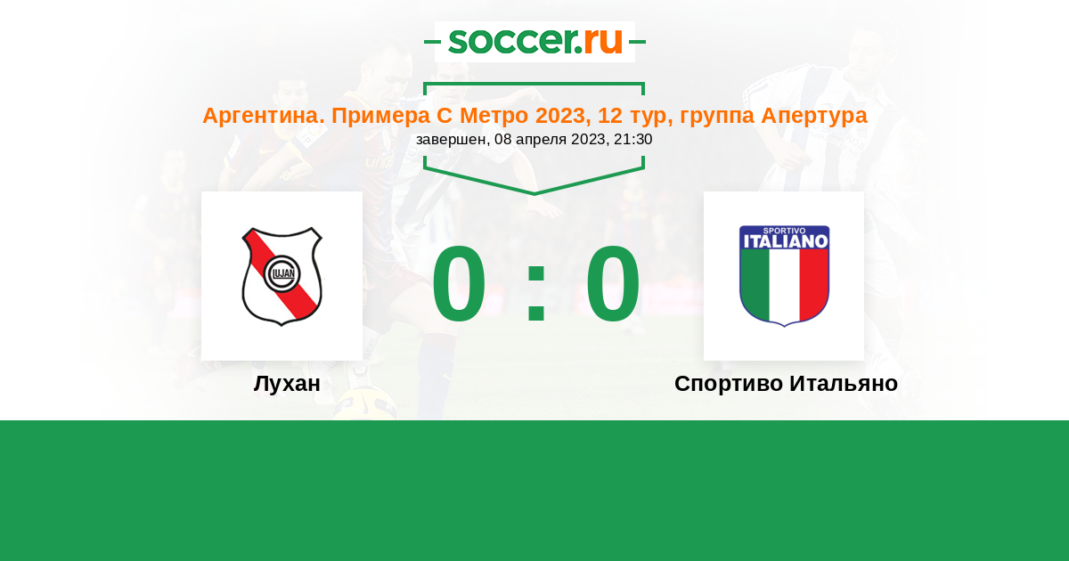 Аргентина. Примера С Метро 13.03.2022 Лухан Логотип футбольный клуб Лухан 0:0 Логотип футбольный клуб Спортиво Итальяно (Буэнос-Айрес) Спортиво Итальяно