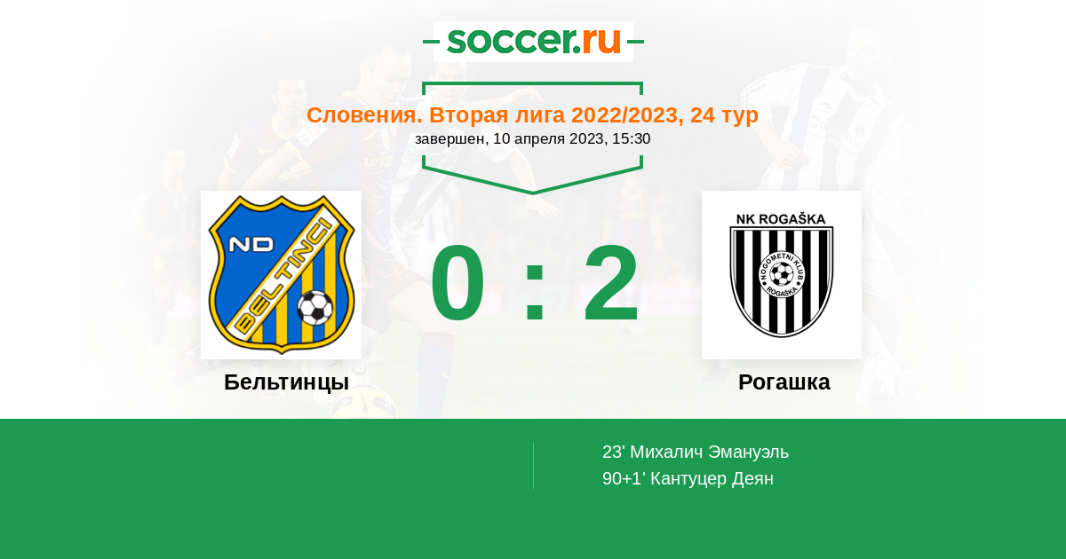Протокол матча Бельтинцы против Рогашка