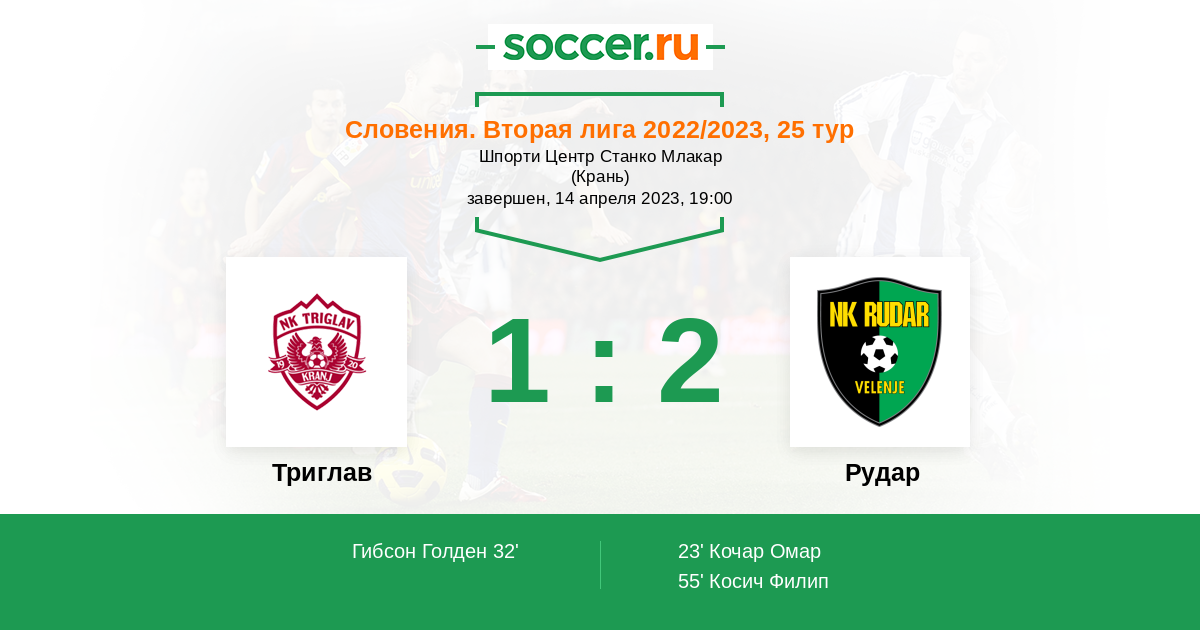 Протокол матча Триглав против Рудар