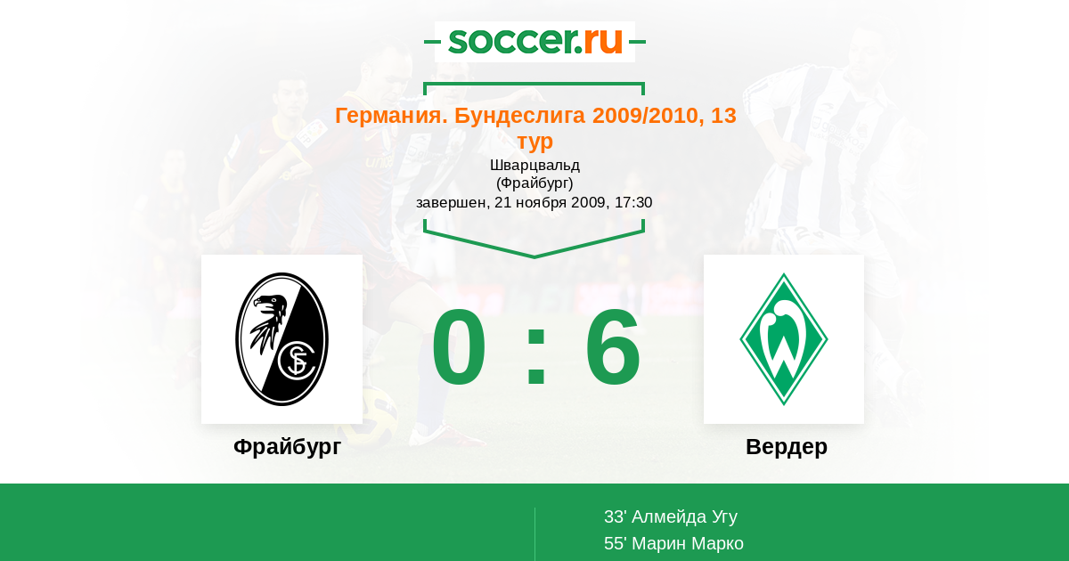 Протокол матча Фрайбург против Вердер