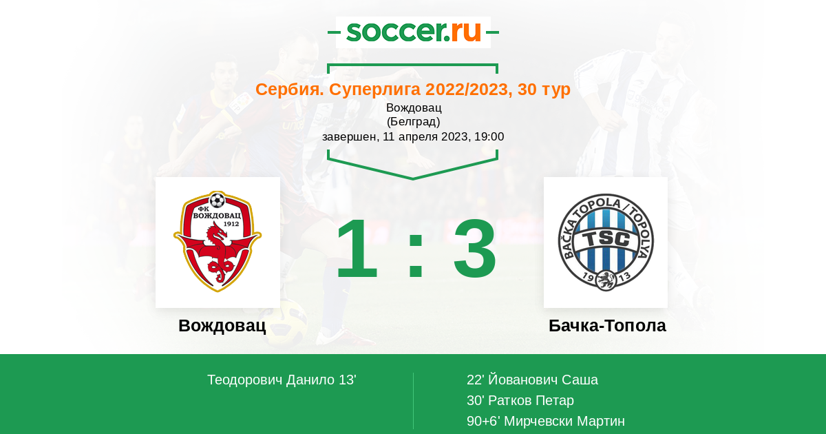 Протокол матча Вождовац против Бачка-Топола