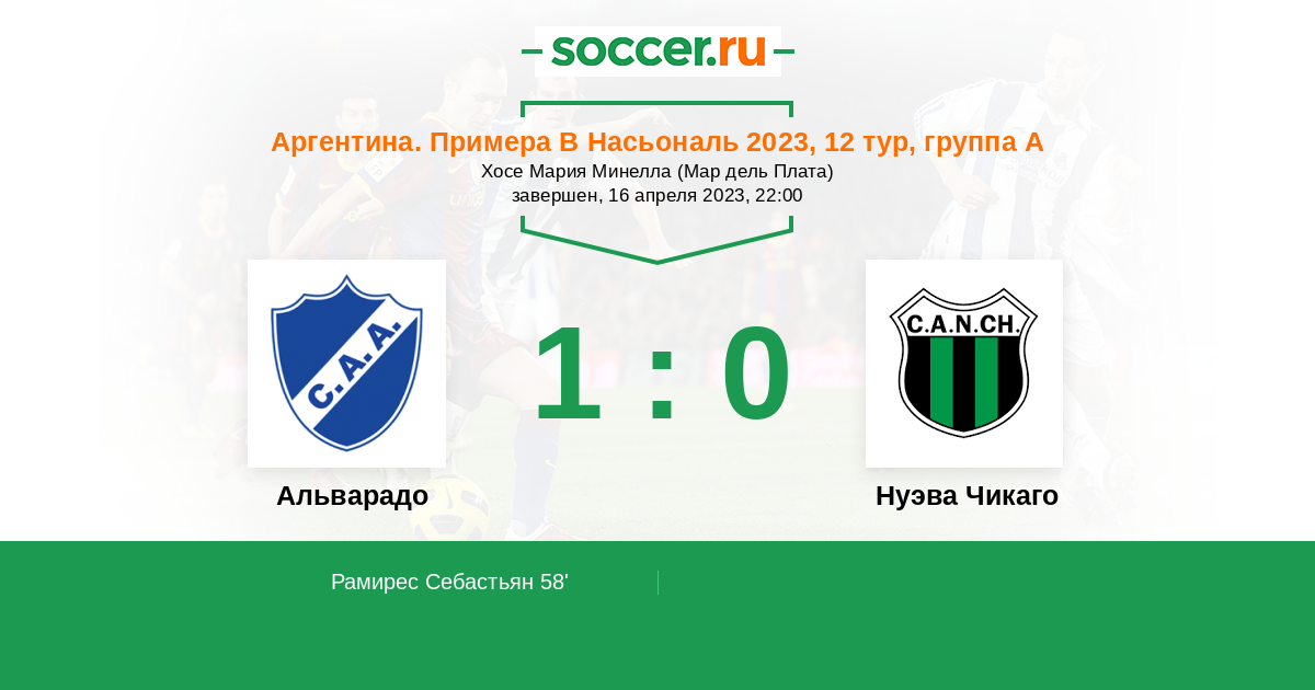 Протокол матча Альварадо против Нуэва Чикаго