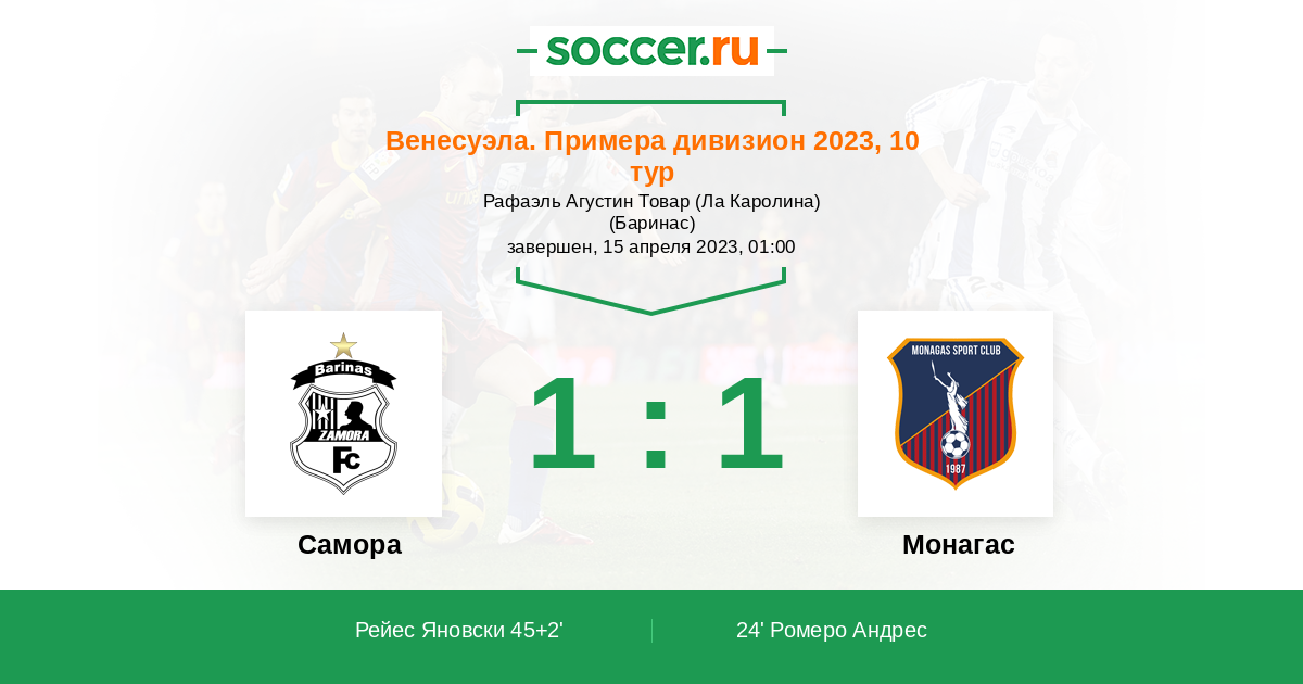 Протокол матча Замора против Монагас