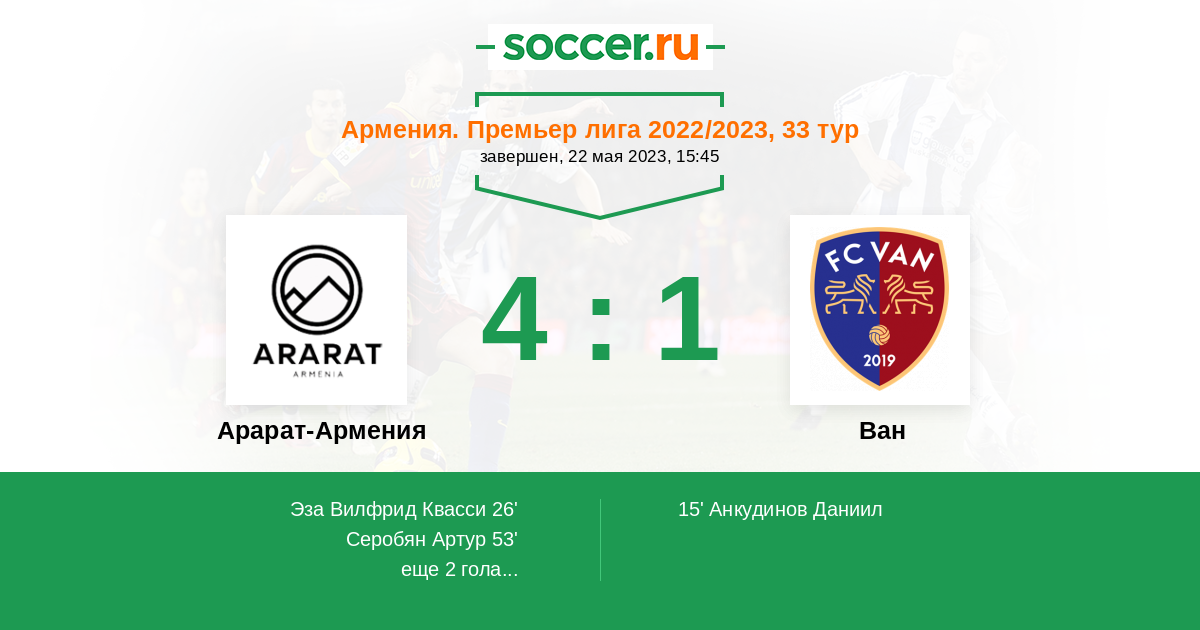 Протокол матча Арарат-Армения против Ван