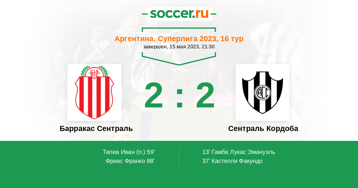 Протокол матча Барракас Сентраль против Сентраль Кордоба