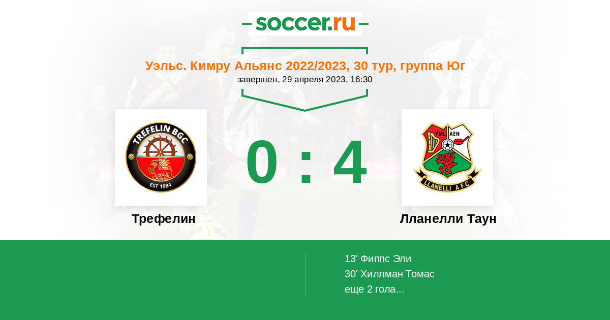 Протокол матча Трефелин против Лланелли Таун