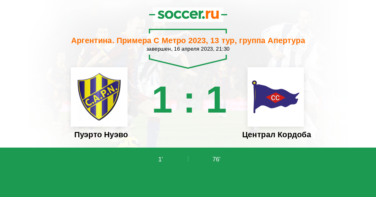 Протокол матча Пуэрто Нуэво против Централ Кордоба